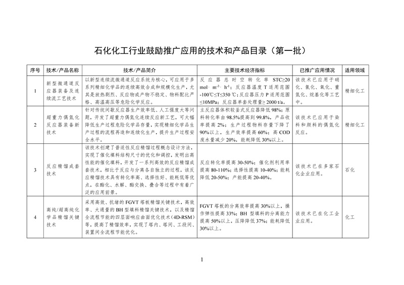 工業(yè)和信息化部辦公廳關(guān)于印發(fā)石化化工行業(yè)鼓勵(lì)推廣應(yīng)用的技術(shù)和產(chǎn)品目錄(第一批)的通知